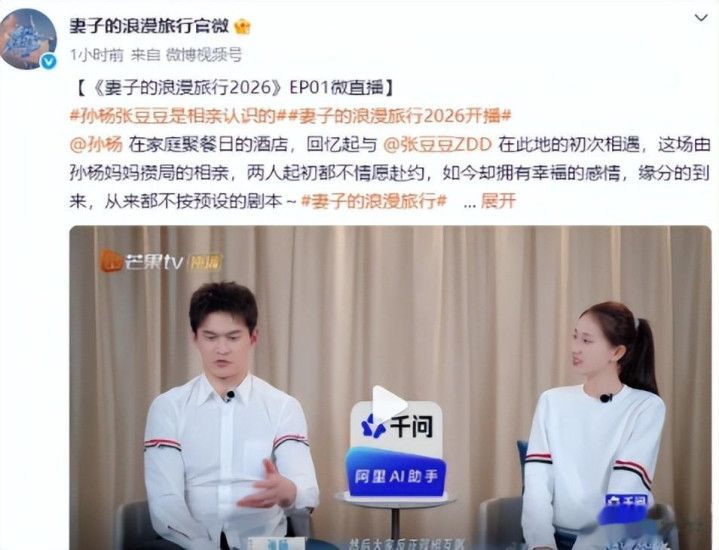 孙杨和张豆豆在新上线的《妻子的浪漫旅行 2026》里正式官宣生子,之前传了快两年的传闻终于被正主亲口坐实,全网都在为这对体坛冠军夫妻送上祝福。