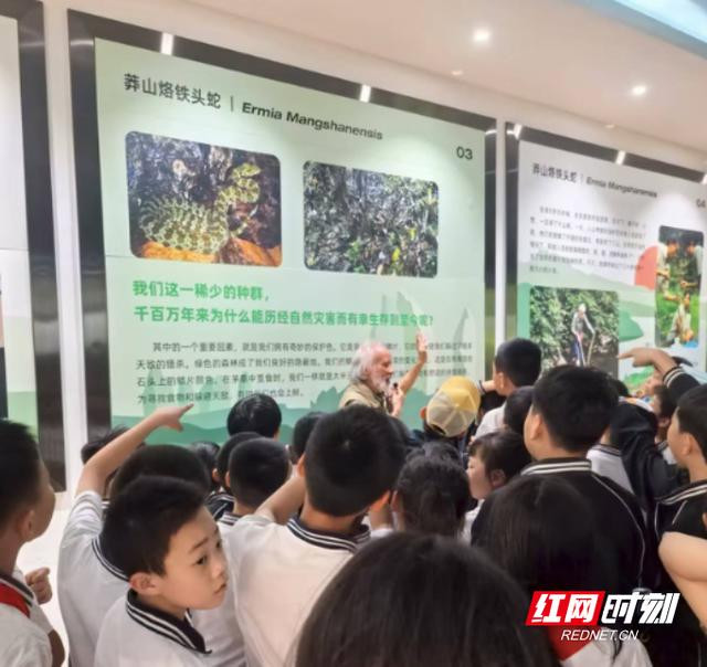 “莽山蛇博士”陈远辉这位与莽山烙铁头蛇打交道数十年的专家,如今经常在景区为游客讲解蛇类知识,成了莽山的“明星导游”。从专注研究莽山烙铁头蛇的科研专家,变成热情洋溢的文旅推介官。“变的是身份,不变的是对这片山林的深情。”陈远辉说道。