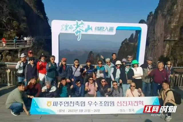 引流韩国客,莽山自有“组合拳”。政府牵线搭桥,早在2019年就成立中韩(郴州)旅游接待中心;更“卷”的是,直接把办公室开到首尔。由湖南秀菏国旅市场化运作的“郴州文旅韩国市场拓展办公室”,豪掷近300万在韩投广告。签证便利+门票5折+离境退税,“真金白银”的政策红利,让满山的“猴嗨森”(好开心)逐渐被“康撒哈密达”(谢谢)取代。韩国银发族保温杯里泡莽山红茶,年轻人则在抖音发起#中韩双语喊山挑战#,用《江南Style》式尖叫为莽山“疯狂打Call”。景区乘势追击,首尔旅展C位推广,新加坡、马来西亚专场推介,国际知名度坐火箭上升。“现在天天有韩国团,来郴州必来莽山。”湖南秀菏国旅董事长熊媛媛笑称。