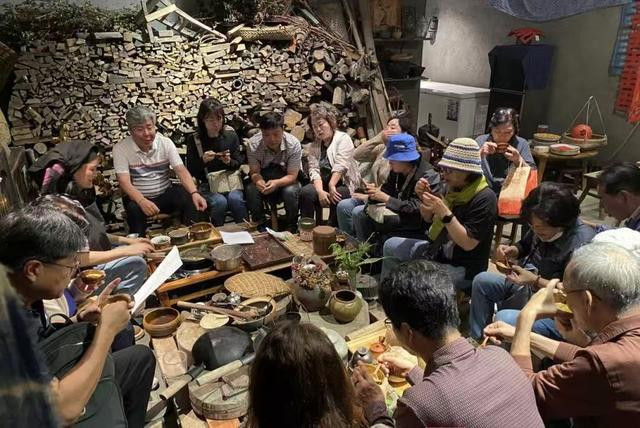 游客打卡莽山脚下的莽左茶舍,体验火塘文化。