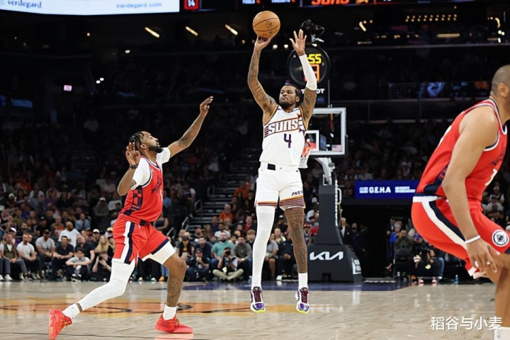 本场比赛中,伤愈复出的太阳的先发后场新援杰伦-格林(Jalen Green)终于完成了自己在球队中的首秀,他在首秀中的表现堪称完美。格林全场出场22分58秒,投篮20中10,三分线外13中6,罚球5中3,得到了全场最高分29分外加3篮板3助攻2抢断的数据,还有2次失误和1次犯规,正负值也是达到了全场最高的+30。格林的出场时间虽然受到了严格的限制,但是他在进攻端简直是大杀四方势不可挡,他展现出了全面的得分能力,他能够向对手内线发起冲击,而且他也具备相当不错的外线投射能力。除此之外,他在防守端的积极性和实际效果也是相当突出的,他也证明了自己是一名不错的防守者。至少在本场比赛中,格林算是打出了一场攻守兼备的表现,他对于比赛的影响力确实是太惊人了,这也是球队能够取得这样一场大胜的重要因素。