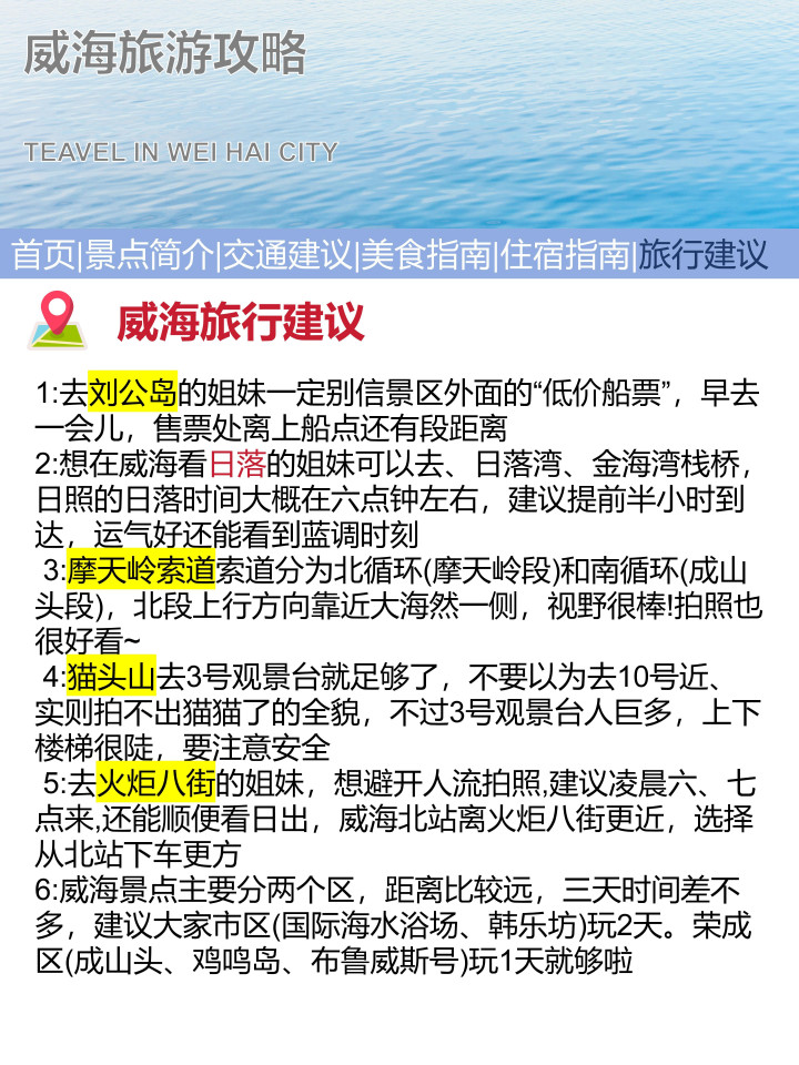 刚发布的威海旅游通知!幸好出发前看到9-10月打算来威海旅游的家人们快来看~刚好可以派上用场啦,一定要认真读完啊,不然真的很容易踩坑,包含了热门景点、旅游建议、交通、住宿、美食等