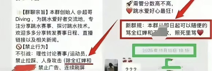 群公告赫然写着“禁止攻击其他运动员,全红婵除外”。