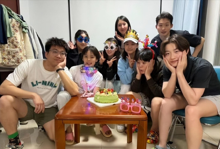 她陪着全红婵吹蜡烛、切蛋糕,和其他队友一起说笑打闹。